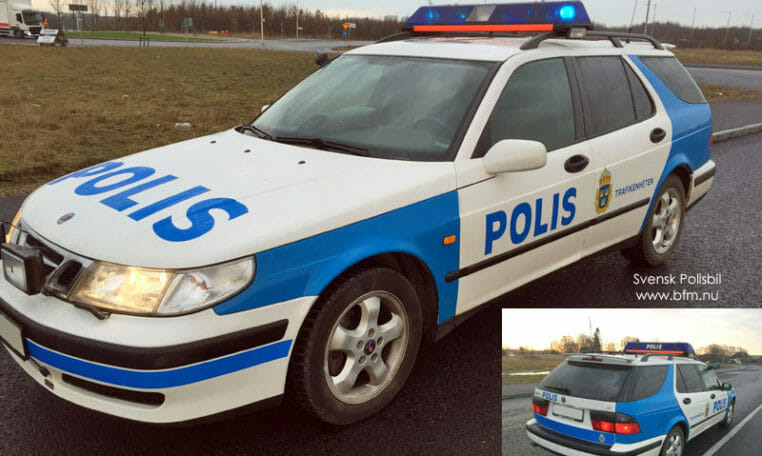 En helt äkta och fullutrustad svensk polisbil med allt som krävs.